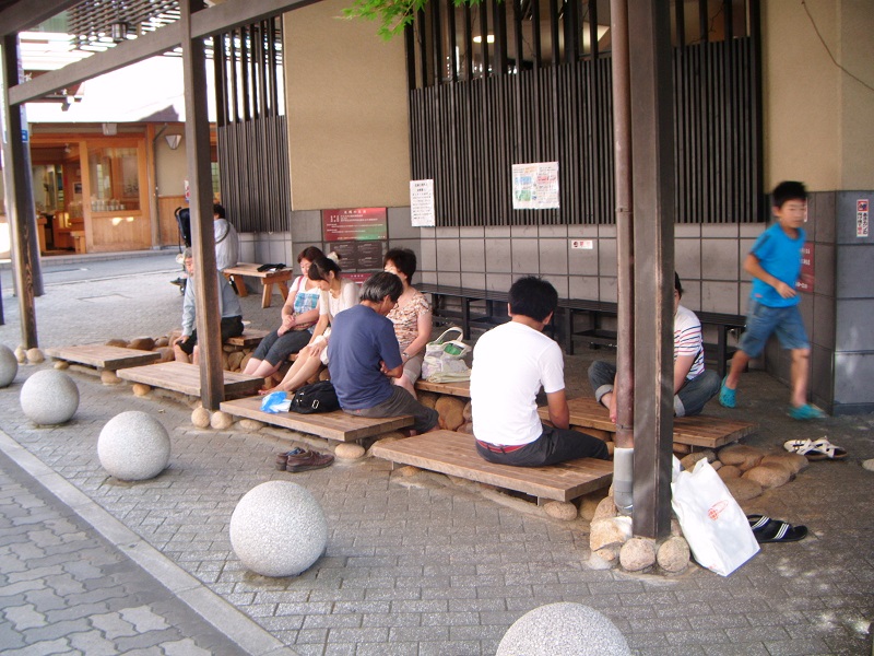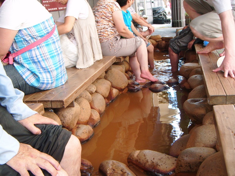 建物の外には、“無料”の足湯があり、いつも盛況!