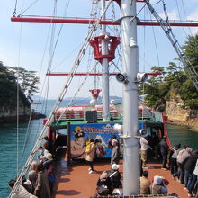 アナウンスが流れていて島々の説明を聞きながらのクルーズでした。
