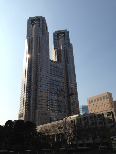 高層ビル街の盟主のように聳え立つのが東京都庁。