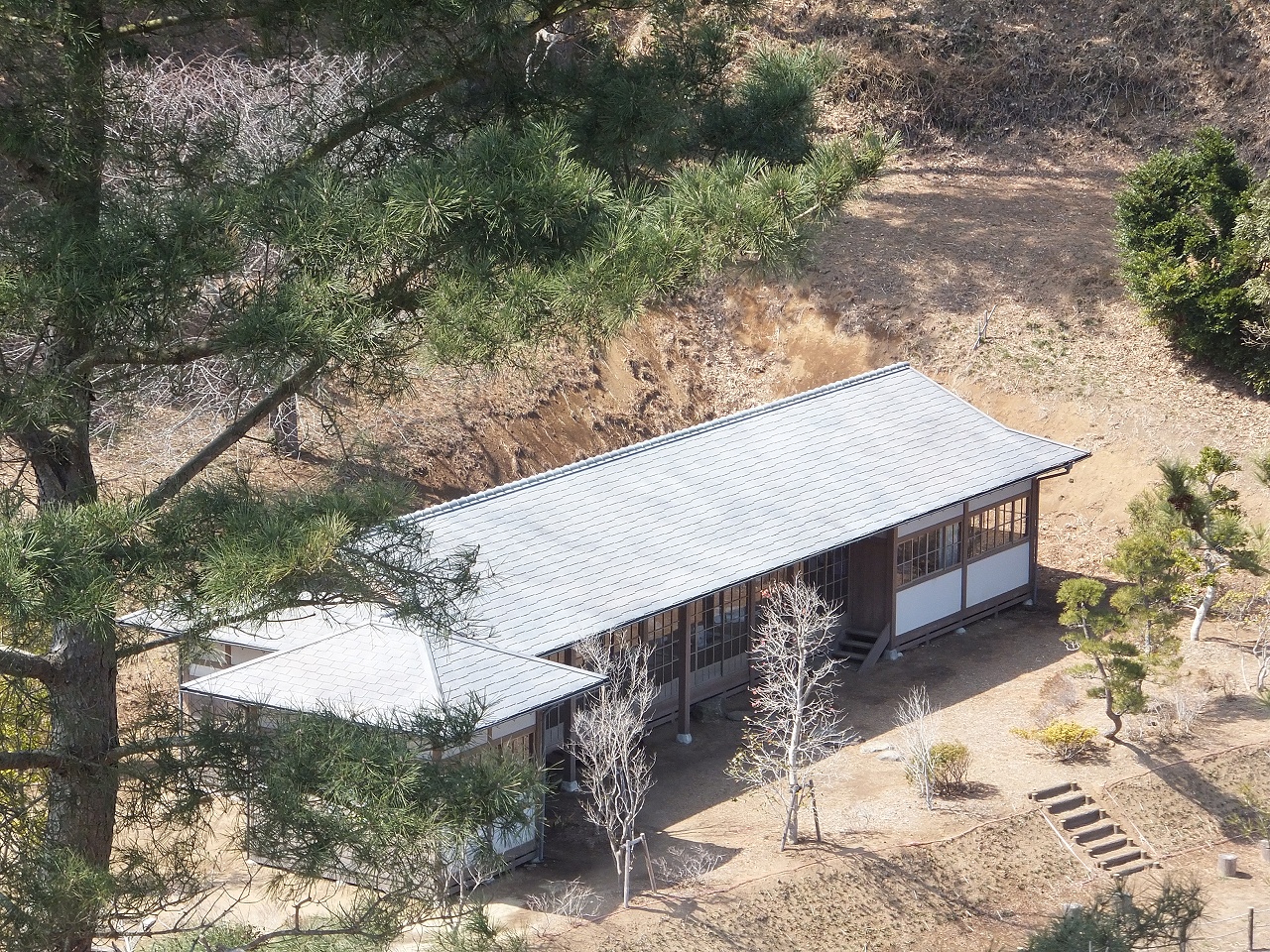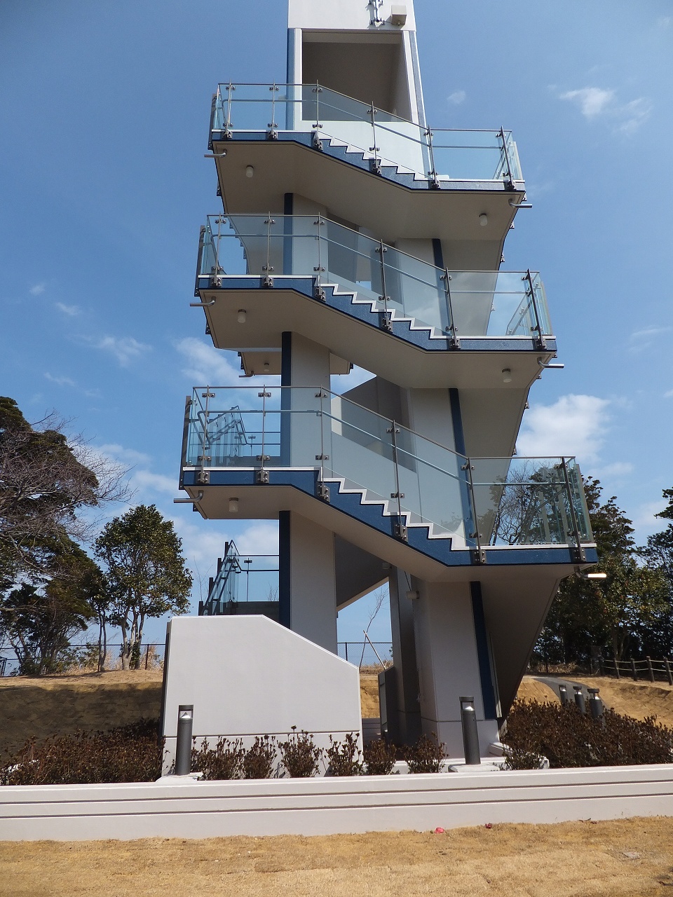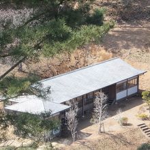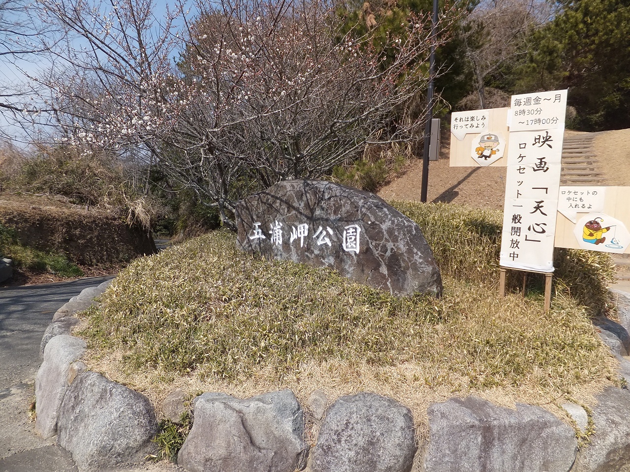 この公園からは、断崖の入江越しに六角堂を一望できます。