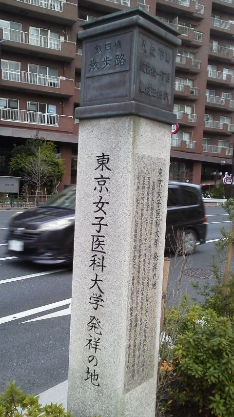 飯田橋駅から九段下までわたる歴史的趣を感じる”飯田橋散歩路”にあるのがここ「東京女子医科大学発祥の地」。ここは、”飯田橋散歩路”でも飯田橋駅からちょっと離れた場所にあります。なんでも、ここは、明治時代に吉岡彌生氏が、ここにあった至誠医院の中に”東京女医学校”を創立したのが始まりとのこと。その後、各種変遷しましたが、今では”東京女子医科大学”になっています。今では、目の前に立派なホテルがありますね。