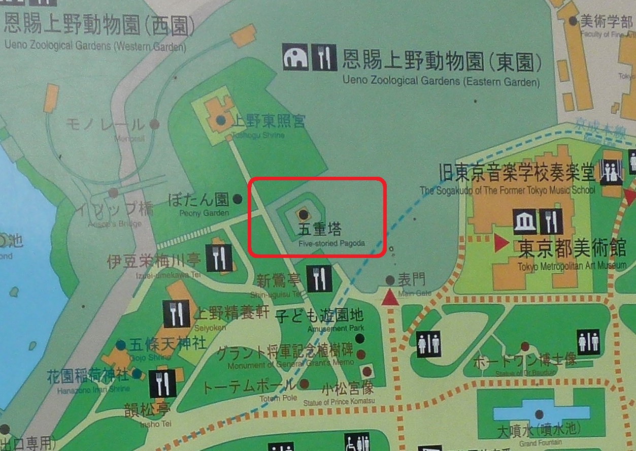 この五重塔へ上野東照宮から行けると思っていましたが行けませんでした。上野動物園の表門から入って左側です。約400年の歴史的貴重な財産が動物園の中にある理由がわかりません。なぜこうなっているのでしょうか。いろいろ事情があるのでしょうね。