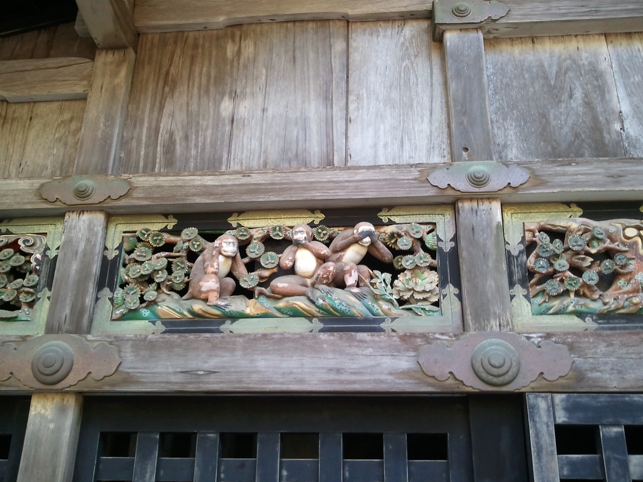 日光東照宮の中にある三猿。三猿とは3匹の猿が両手でそれぞれ目・耳・口を隠している意匠だそうです。ついつい陽明門を目指してしまい、通りすぎてしまいがちですが、陽明門を上がる手前にあります。ちょっとした人だかりができていると思いますよ!