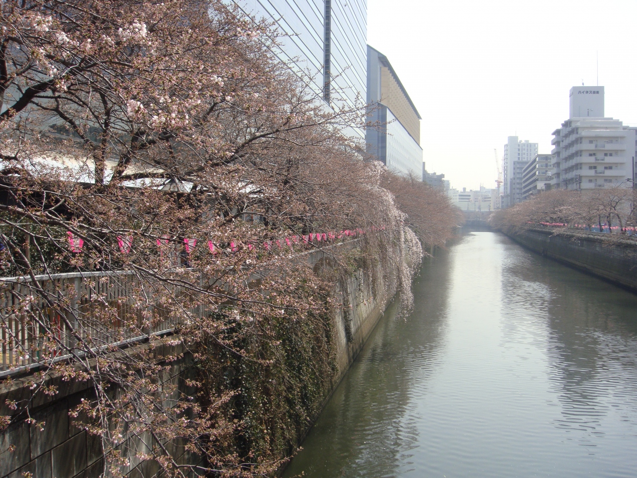 目黒川の桜が咲き始めました。池尻大橋から目黒までの約3.8キロの川の両脇沿いに約800本のソメイヨシノが植えられています。この日(3/28)はまだ2,3分咲きでしたが、今週末から来週にかけて見頃となるでしょう。冬の夜はイルミネーションの光の花が咲いていますが、本物の桜の方が断然きれいです。