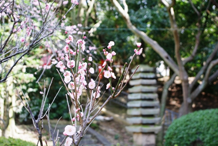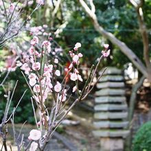 意賀美神社が鎮座する万年寺山の、石塔の横の広場のような場所にに植えられている梅。