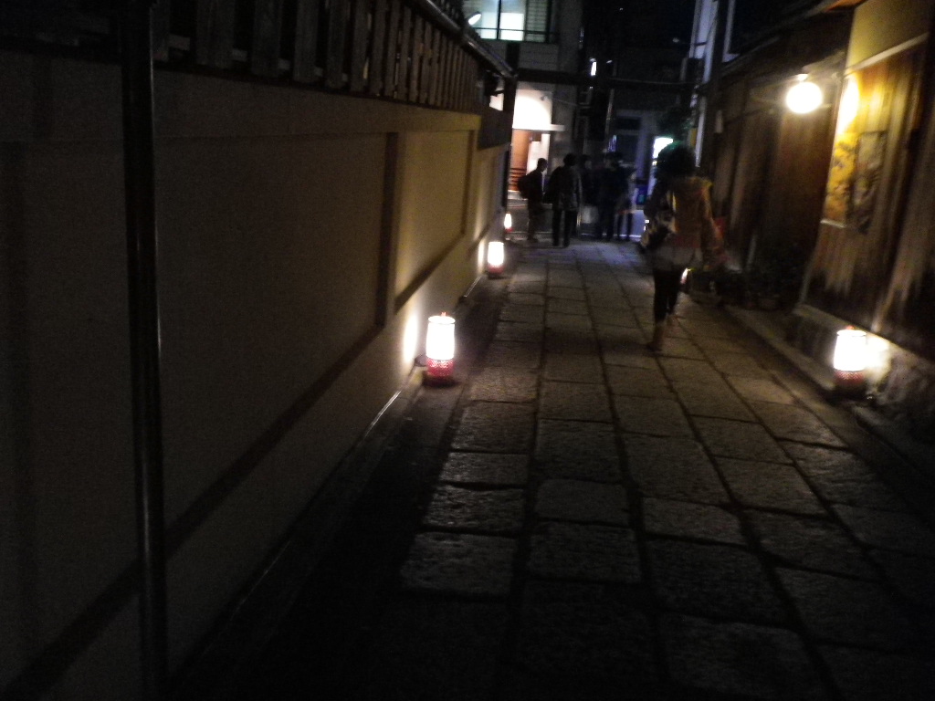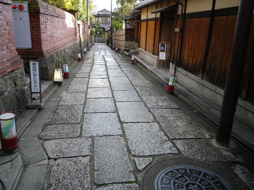 親子丼で有名なひさごの前を通り、細い路地を左に切れ込むとそこが石塀小路。京都らしい雰囲気を味わえる場所で、できることならあまり観光客のいない時間帯に歩いて見たい。外国人を連れて行くと非常に喜ばれる場所。