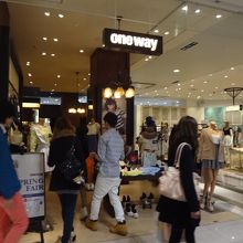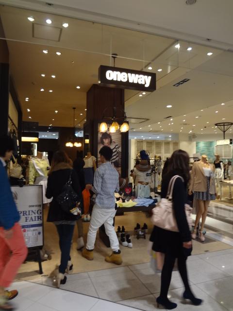 今年3月7日にグランドオープンし、マスコミなどでも大きく取り上げられたあべのハルカス。その西側に大きく広がるあべのキューズモールも2011年4月にオープンした、ショッピング・専門店ゾーンです。2階に、渋谷109のショップが集まったコーナーがあります。ワンウェイはその中の1店舗で、ホワイトやデニムを基準にした爽やかでキュートなブランドです。