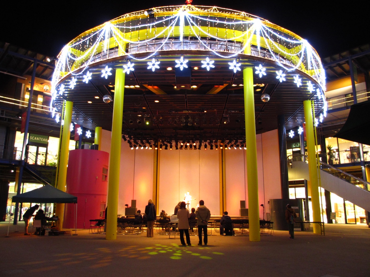 いつも盛り上がっています。今回は夜に行ってみましたが、丁度ライブなどもあり多くの人たちが来ていました。入り口はライトアップしてとても綺麗でした