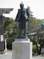 大阪城公園の豊国神社内にあります。大阪城というと豊臣秀吉のイメージが強いと思いますが、実際現在のお城は3代目(1代目が豊臣秀吉、2代目は徳川家によって建設された)。お城を見た後で、この堂々とした豊臣秀吉公銅像を見ると、何だかほっとしますね。実際、大阪城内部の展示も豊臣秀吉中心なので、この銅像を見てシメ!という感じです。写真を撮る観光客の方で賑わっています。
