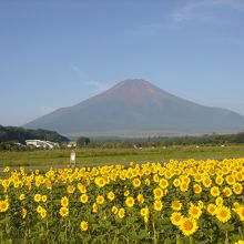 富士山をバックに満開の黄色い向日葵は本当に絵になります。
