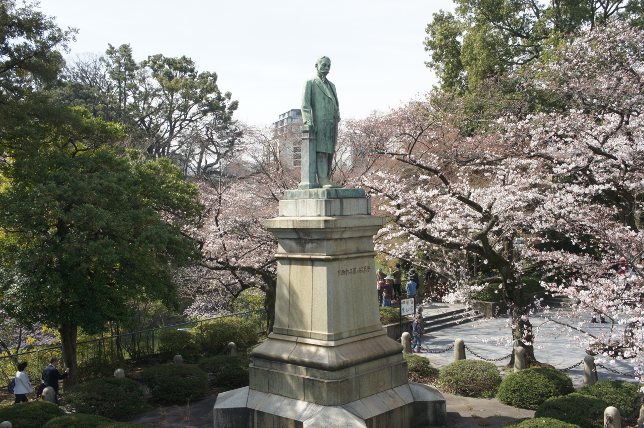 品川弥二郎像は、靖国神社の道路を挟んだ向かい。濠沿いの九段坂公園内にあります。