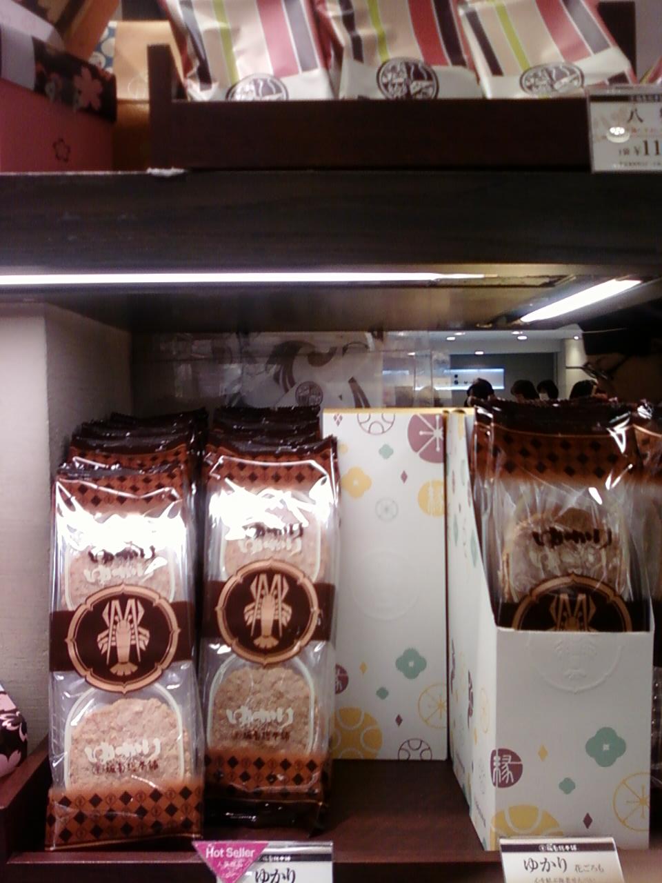 ここの坂角総本店さんは、新宿駅東口から4分くらい、また、東京メトロ新宿三丁目駅から直結している新宿伊勢丹の地下1階、フードコートの中にあります。ゆかりという、えびでできたおいしいおせんべいが全国的(?少なくとも東海や関東地方では)すごく有名ですよね。えびだけでなくホタテのいわゆる揚げせんもおいしいです。エスカレーター脇のおせんべい屋さんがいくつか集まっているところにあってで少しわかりづらいですが、えびのマークが目印です。