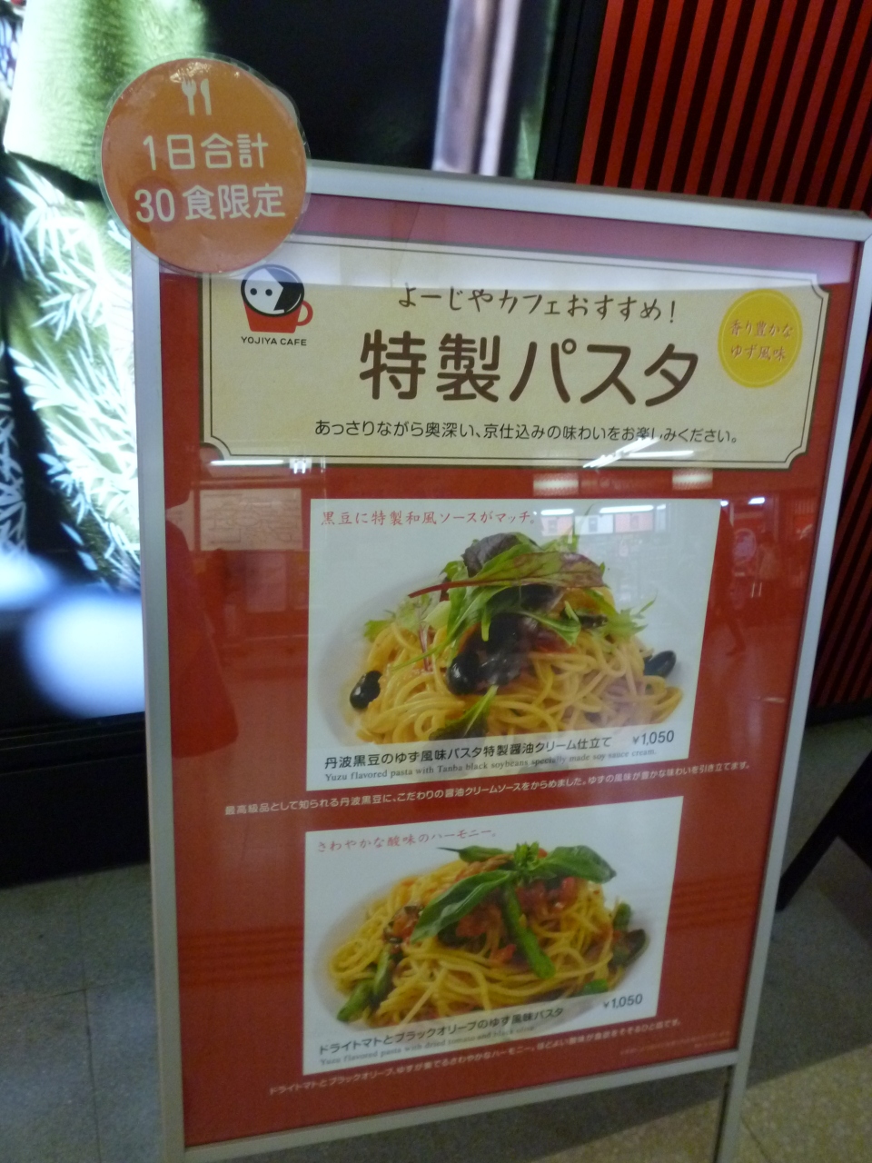 羽田空港なのに、何故かここに入ると京都にきた気分になります。あんみつ、抹茶ぜんざい・・どれもおいしくて空港で一休みするのに良い場所です。1日30食限定のパスタもあります。ついで