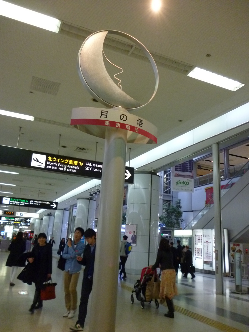 羽田空港のモノレール、京浜急行乗り場へ向かう途中にあります。空港内の地図に「月の塔」とかいてあるのでもっと大きい塔かと思ったら、意外に見落とすし、小さくがっかりでした。写真を撮りたくても人通りが多くて、ゆっくり立ち止まって写真はムリでした。