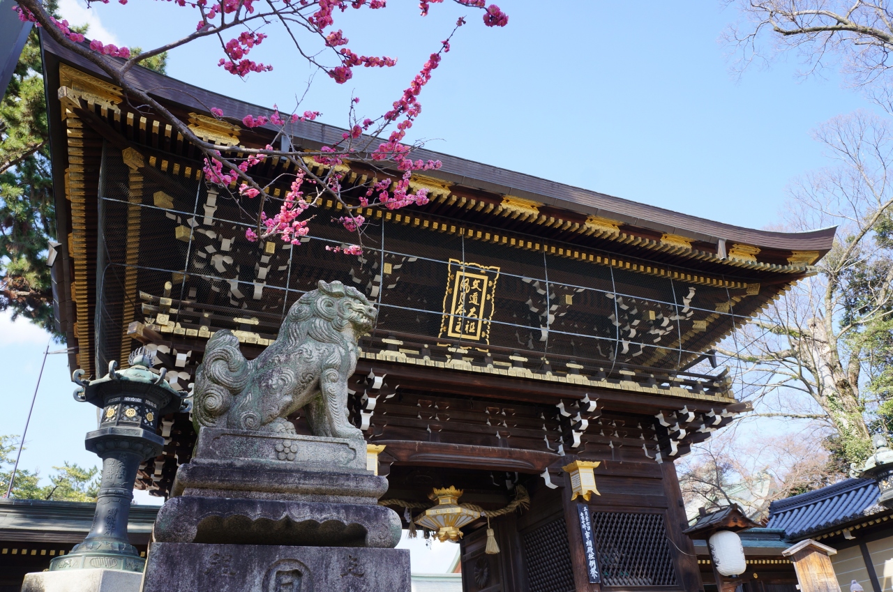 学業の神様なので、学生さんがたくさんいらして、お賽銭のところは長蛇の列です。他はすいていて、広い境内に門にと楽しめます。