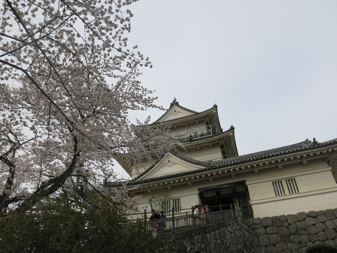 桜の名所は数あれど、お城と桜のコラボレーションが見られるお花見スポットは、東京近郊ではここだけと思います。お花見シーズンの週末はびっしりとブルーシートが敷き詰められています。期間中は桜まつりが開催され、出店が出ているので、よりいっそう華やいだ雰囲気です。