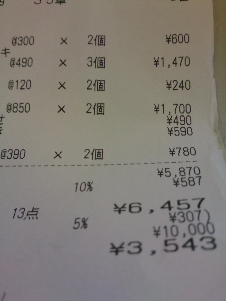 しかし、本日は支払い時になんだか少々高いなあ、と思ってレシートをみると、
