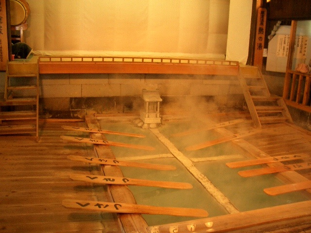 名前は『熱の湯』ですが、入浴施設ではありません。湯もみと踊りを見せてくれる施設です。入場料は500円で、公演時間が決まっています。通常は午前3回午後3回の1日6回ですが、冬期は午前のみになっています。観覧席は1階と2階にありますが、1階の正面席が一番良いアングルで見ることができます。湯もみ体験もできて、体験すると証明書が貰えますよ。