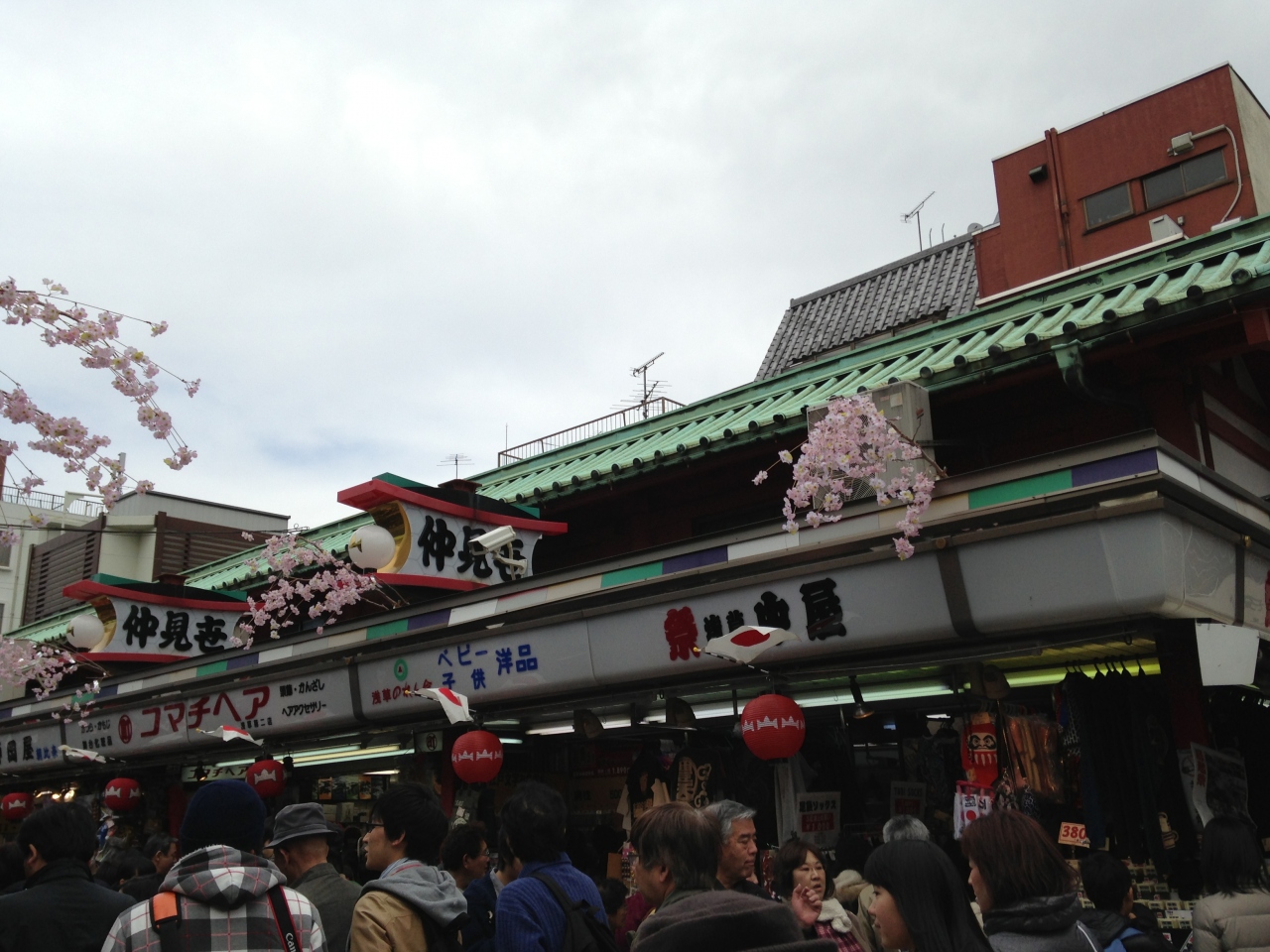 人がごった返していました。平行してお店をまたいで道があり空いていましたが雰囲気を楽しむためにあえて歩いてきました。品物は外国人用というか”へっ?”と思うセンスのものからキャラクターの和装小物(京都旅行の時に購入したものが)売っており、食べ物はお団子、芋羊羹、人形焼きなどいいい匂いでした。