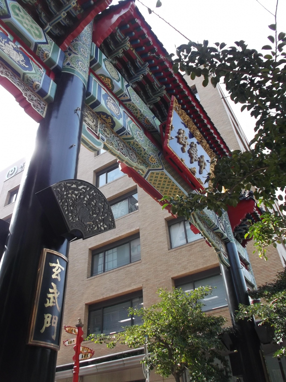 中華街・北の守護門、シンポルカラーは黒、中国風水思想に基づいた牌楼です。