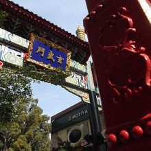 ホテル群があるエリアで、門そのものに華やかさはありません。この門を潜り、しばらく行くと加賀警察署(この通りはちょっと寂しい感じ)、そして賑やかな善隣門に至ります。