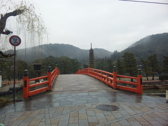 でも、雨でしっとりと濡れた宇治橋、その下を流れる宇治川も、なかなかよかったですよ。