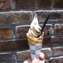 コーヒーの良い香りが漂っていて帰りにさっと飲んで行こうと思ったら、コーヒー牛乳ソフトクリームの看板を見てこちらにしました。