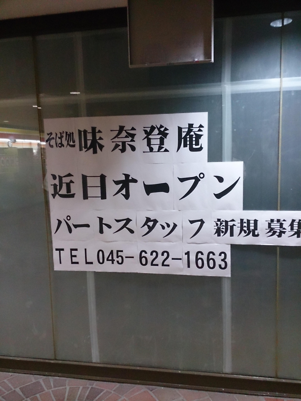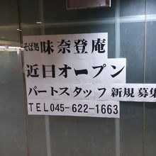 横浜西口の天理ビルに所要があり出向くと、地下に写真のような張り紙があった。どうやら味奈登庵ができるようだ。味奈登庵は富士山盛という激盛のそば店として神奈川県では非常に有名。この場所以前も蕎麦屋だったと思うが・・・