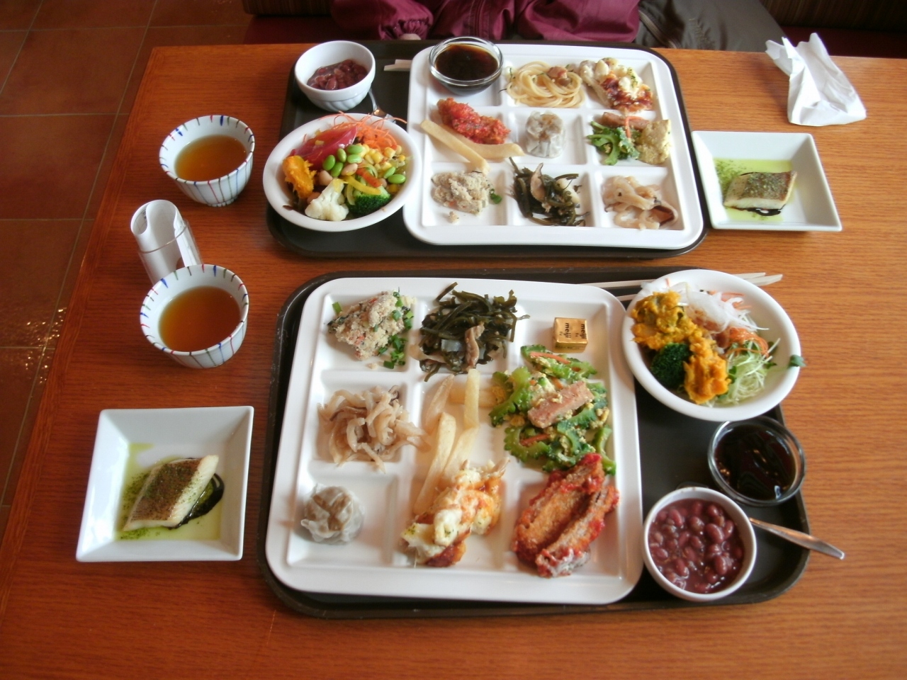 メニューはチラシ寿司やカレー、ピラフ、パスタの他にクーブイリチーなどの沖縄家庭料理が数種類、魚料理、野菜サラダがありました。デザートは、カットフルーツにソフトクリーム、ぜんざい、ケーキ、パイなどがありました。全体的に料理の種類はそれほど多くはないし、特別美味しいものもなかったが、料金平日大人1,160円を考えたらまずまずのパフォーマンスと思いました。