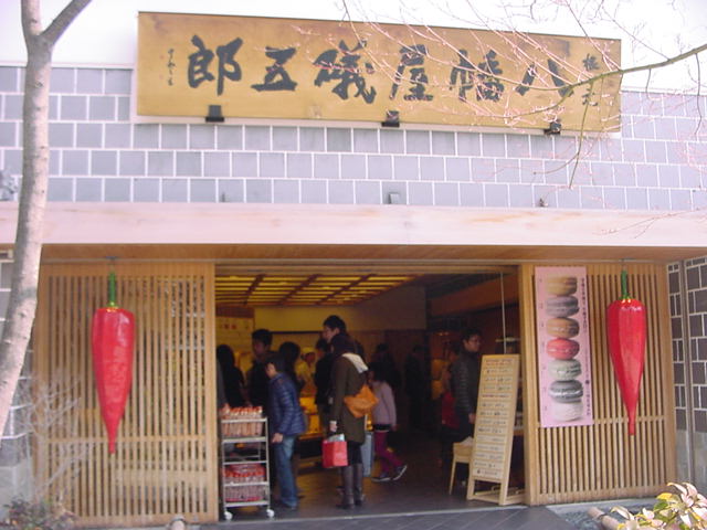 多くの観光客が集まる善光寺の参道沿いにある七味唐辛子の専門店です。店頭には大きな唐辛子のオブジェが迎えてくれます。店内は大勢の観光客でにぎわっています。飯縄高原にある八幡屋のファームでとれた唐辛子で作ったものがお土産として人気。
