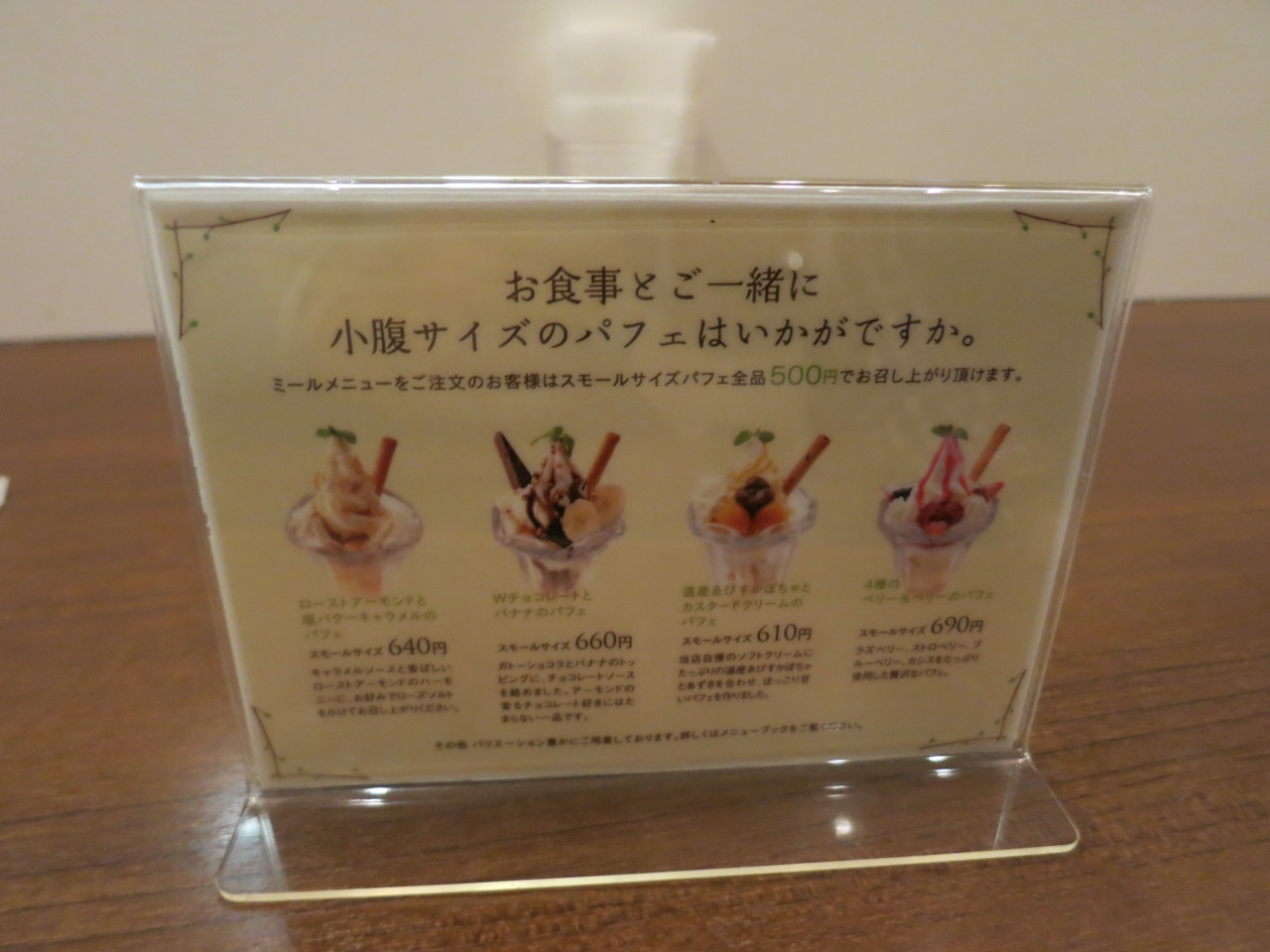 札幌駅西口地下にあるパフェなどのスイーツの店。スパゲティーなど、簡単な洋食メニューもあります。