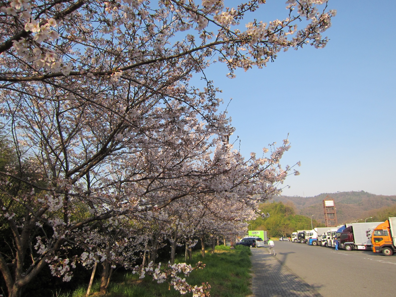 駐車場沿いに桜の木が植えてあるので、とてもきれいでした。