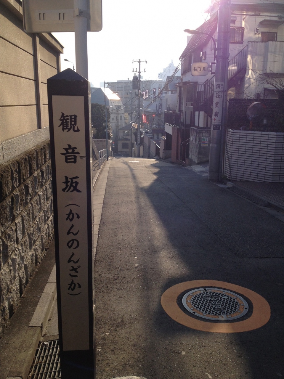 明治公園の観音橋交差点を西に折れた聖輪寺前から坂は始まり、瑞円寺入口前を通って鳩森八幡神社まで登っています。