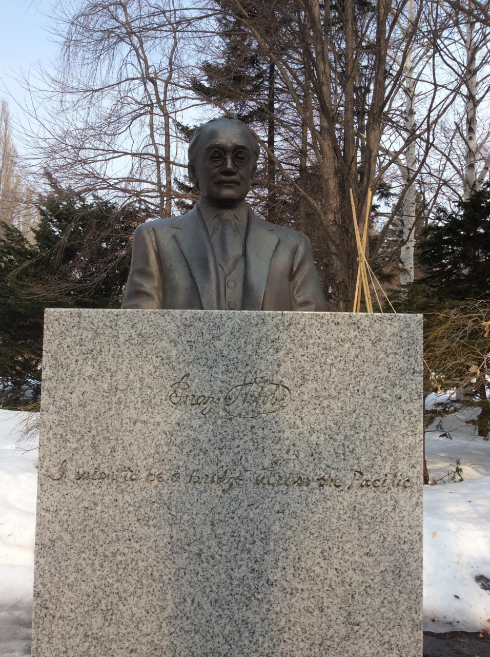 新渡戸稲造胸像は、北海道大学のポプラ並木を観に行った際に、