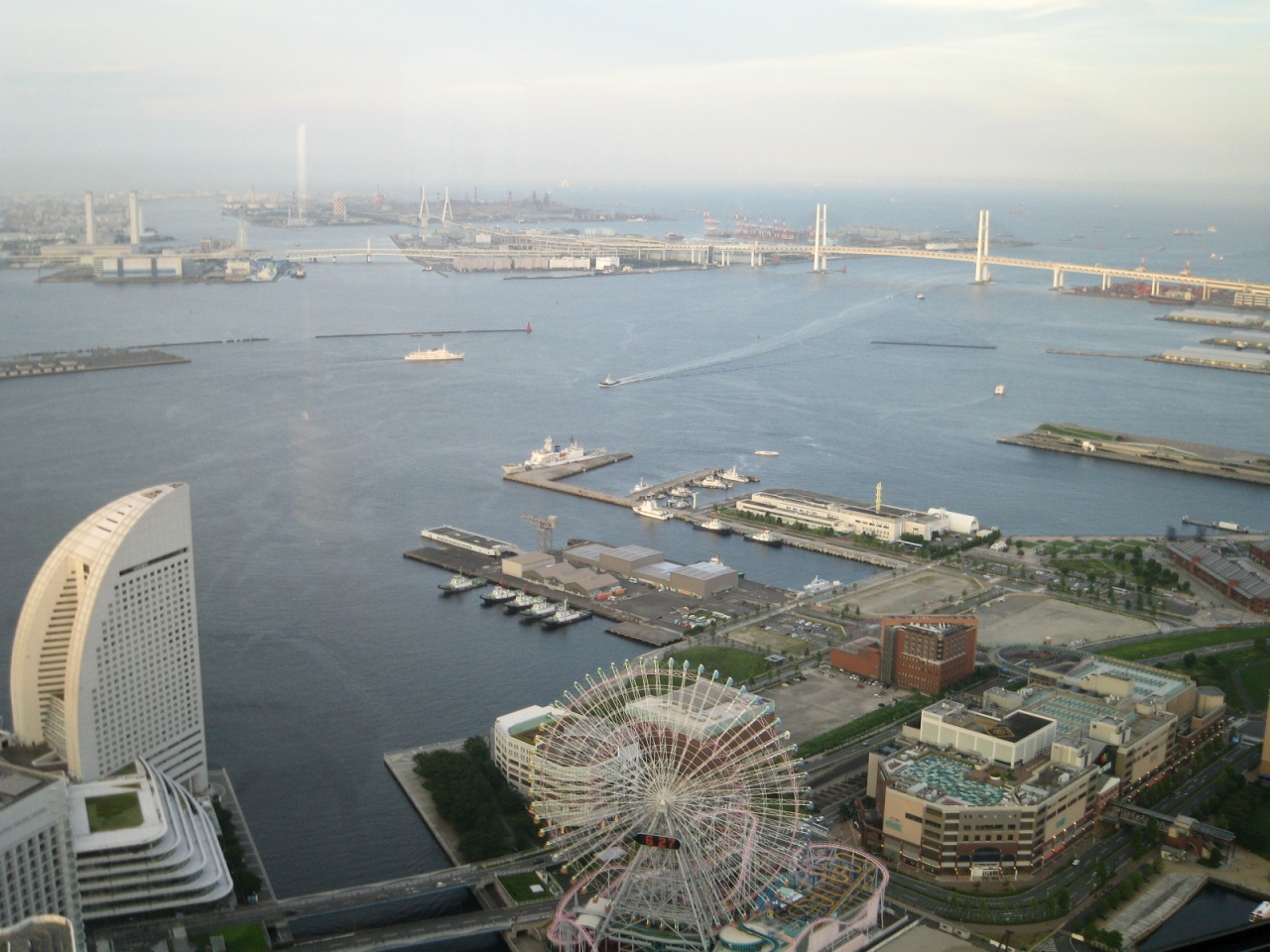 最上階の展望台からは横浜みなとみらい21を見降ろせる。