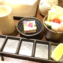 まず一口サイズの冷奴と野菜スティックが出てきました。