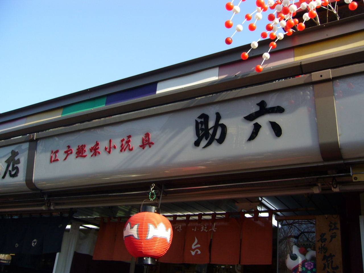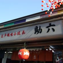 浅草仲見世通りにある江戸玩具のお店です。こじんまりとした店内には懐かしいと思える商売繁盛・無病息災によいとされる赤フクロウやタヌキ、かぶり犬などの玩具が並んでいます。時代を越えて受け継がれる玩具には情緒が温かみが感じられます。ぜひ立ち寄ってみてくださいね。