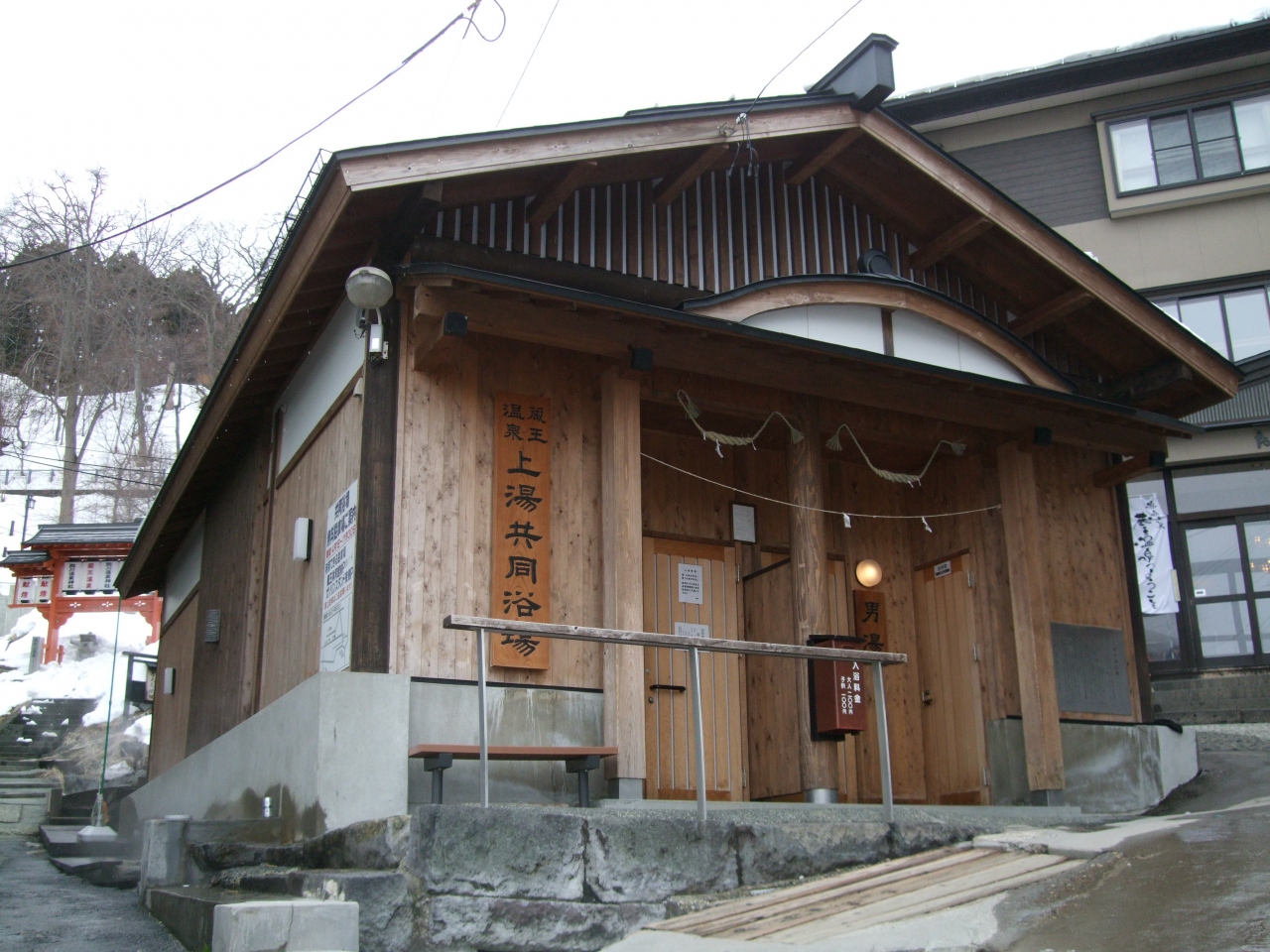 蔵王温泉上の湯共同浴場の近くに、数台分の無料駐車場があります。