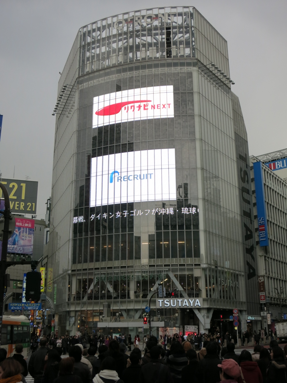 渋谷 ハチ公口前のスクランブル交差点の正面にある壁面が街頭ビジョン「キューズ・アイ」が設置されたビルです。映画やテレビで渋谷の景色と言えば必ずと言ってQFRONTが映り渋谷を代表するビルです。テナントはTSUTAYAとスターバックスが入っています。