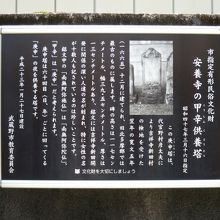 岸光山吉祥院安養寺は、真言宗豊山派に属する密教寺で、本尊は不動明王、総本山は奈良県桜井市にある長谷寺だそうです。「多摩新四国八十八ヶ所札所第一番」の霊場で、武蔵野吉祥七福神の布袋尊にもなっています。門前には寛文5(1665)年に建てられた庚申供養塔(市有形民俗文化財)や六地蔵があり、お寺の歴史を感じます。大晦日には除夜の鐘をつく人で賑わう梵鐘(市有形文化財)は、江戸時代に作られたものだそうです。歴史を感じるお寺には、まだまだ新しい笑顔の布袋尊もおりました。武蔵野八幡宮の東側にあり、五日市街道から細い道を少し入ったところにあるので、訪れる際は注意が必要です。