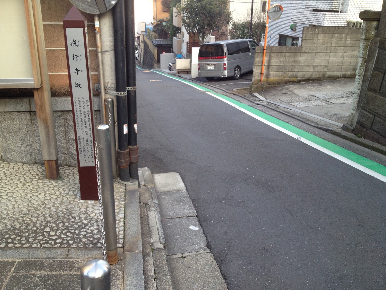 名前の通り、この坂は戒行寺の前へ登る坂です。坂道の多くはその近隣にある寺名を由来としてますが、この戒行寺坂もそれに倣っています…