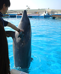 イルカラグーンは、オキちゃん劇場同様イルカを観れるわけですが、より観察することに主眼をおいていて、握手やエサやりが間近で観ることができます。