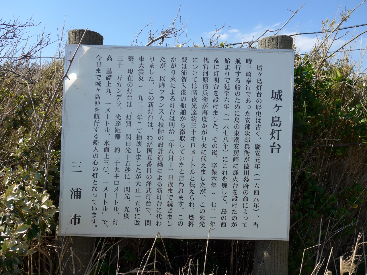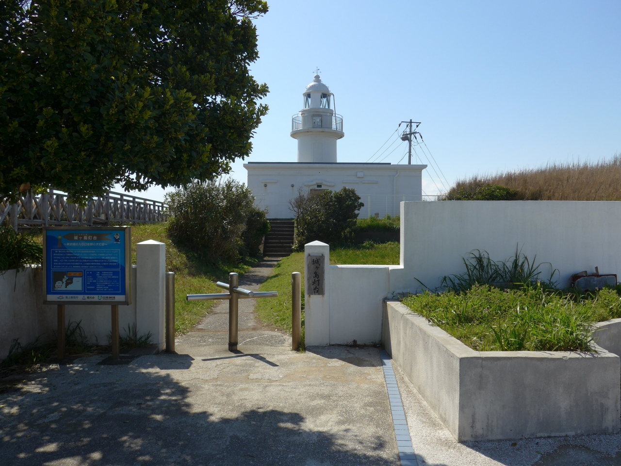 下車後、北方向の右手にお土産品売り場がありすぎると灯台方面の入り口看板が見えます。灯台は約30m程の高台に据えられており東京湾の入り口を照らしています。
