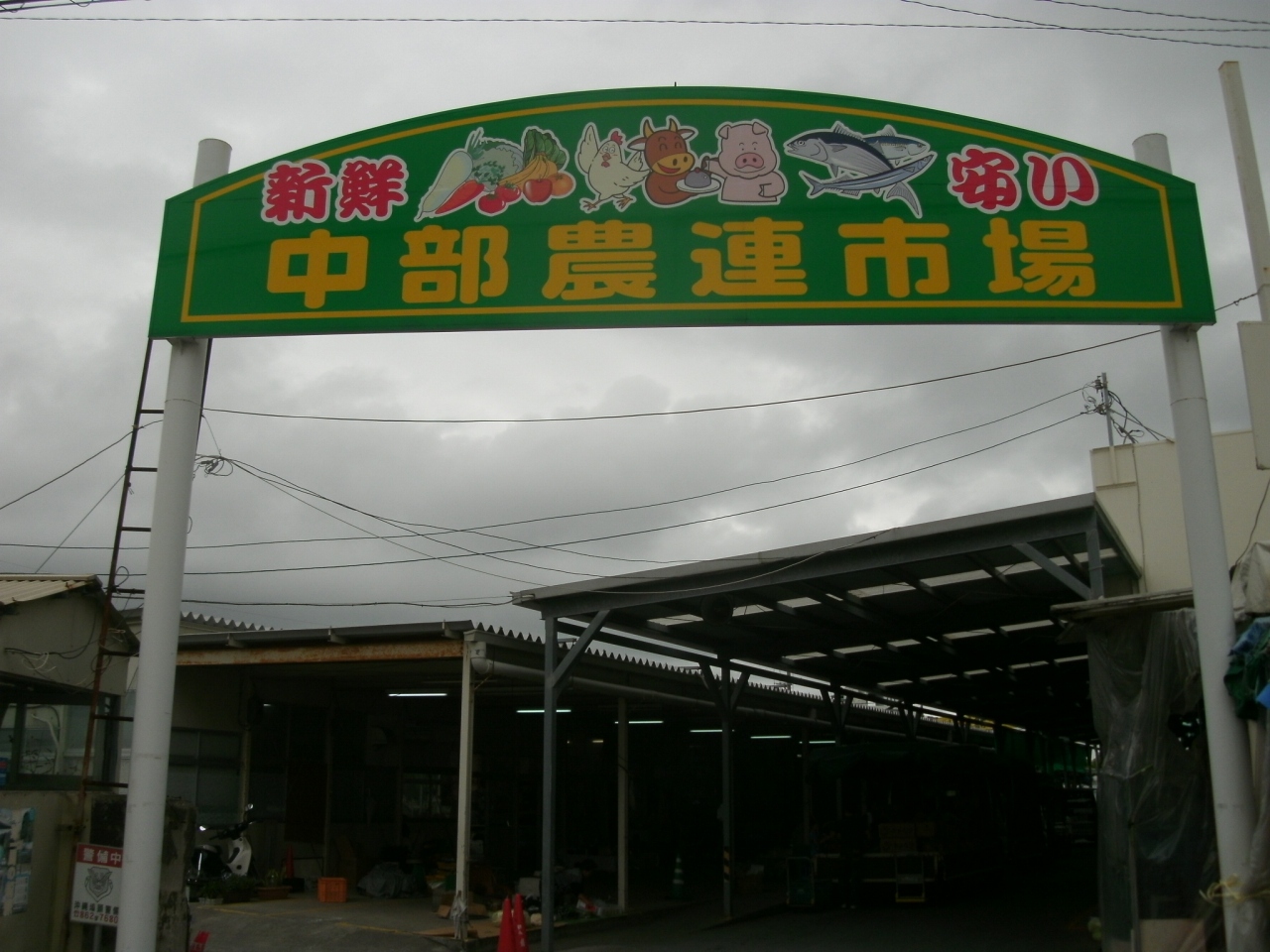 国道330号線のコザ十字路から西に400mほど行って、北に少し上がったところにあります。大きな倉庫のようなところに沢山の地元で採れた農産物が並べて売られています。“農連市場”と行っていますが、農産物だけでなく衣類や雑貨、弁当なども売っているお店もありました。現代の綺麗でまとまった市場でなく、“昔の市場”の雰囲気を感じることが出来るところです。