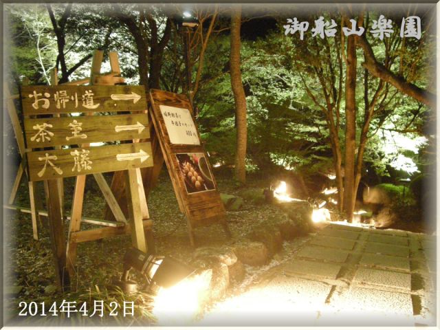 庭園内は夜でしたので、道しるべの看板がよく見えなかったので遊歩道の道順に迷いました。