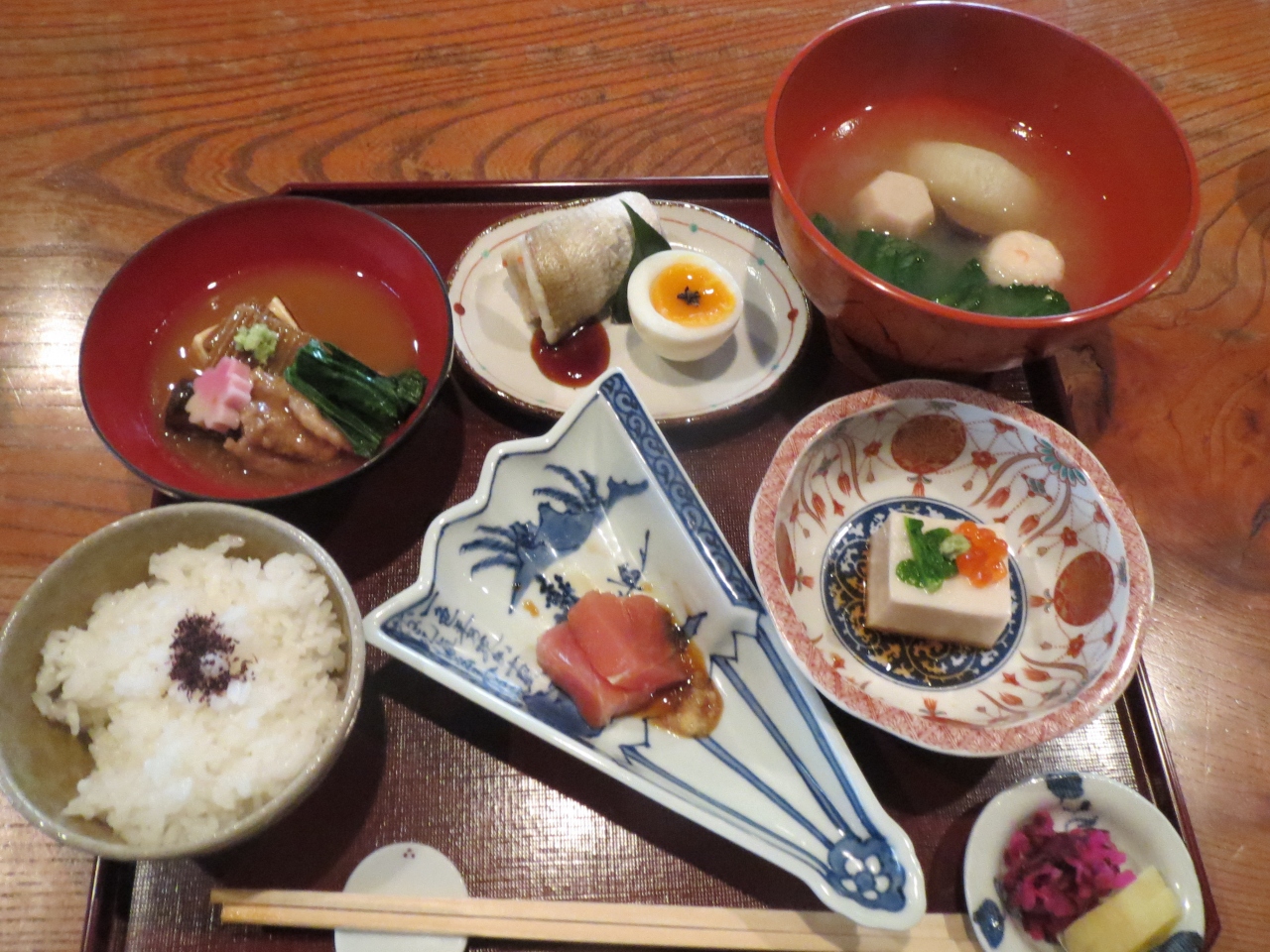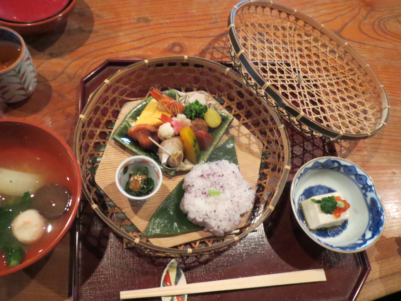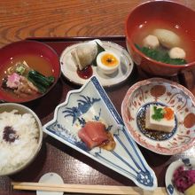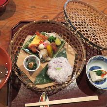 ひがし茶屋町の通りにあります。お店は古い建物をそのまま使っていて、とても雰囲気があり、中庭も素敵です。料理は味はもちろん、竹籠に入ったものや、器にもこだわっているようで、見た目にも楽しめます。観光客ばかりではなく、地元の人も通うお店です。