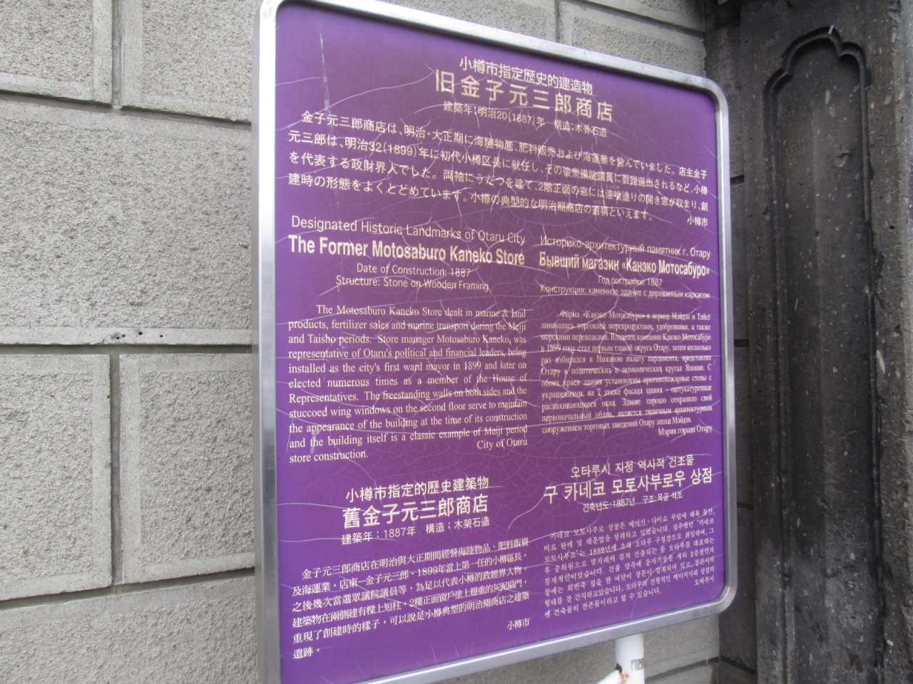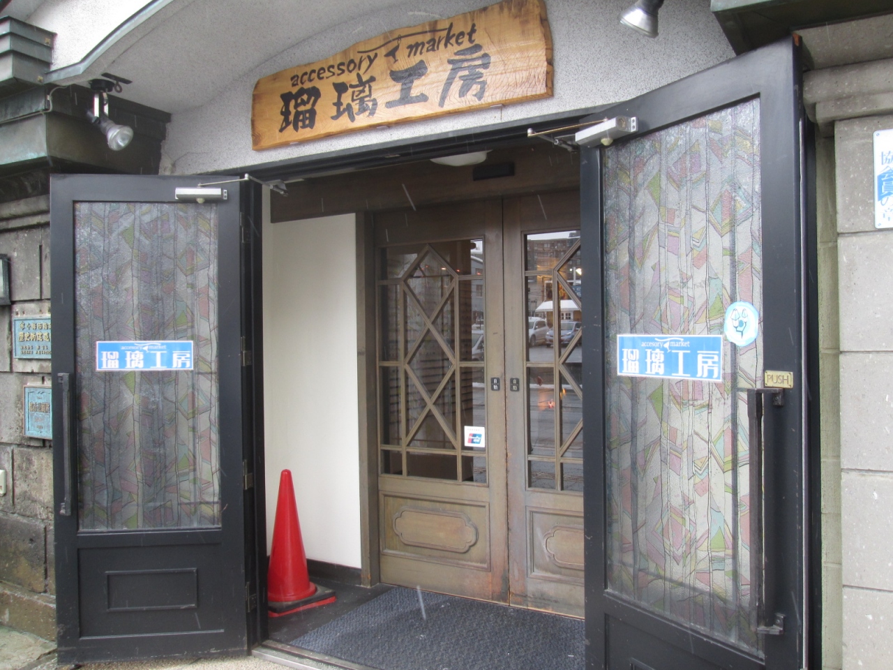 愛知県の犬山市に、明治時代の建物を移築したテーマパーク「明治村」があり、当時の建物が幾棟も保存されていますが、この「旧金子元三郎商店」は個人商店でありながら、まだ現役であり続けていることは、素直に凄いと思います。木造石造りで、両袖には防火用袖壁である卯建つ(うだつ)が設けられた建物は、現代では見ることのできない貴重な文化財でもありますね。現在はアクセサリーショップとして運用されていました。