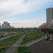 この日も,土手には,たくさんの花見客がいっぱいでした。