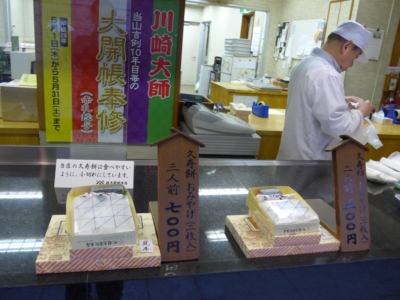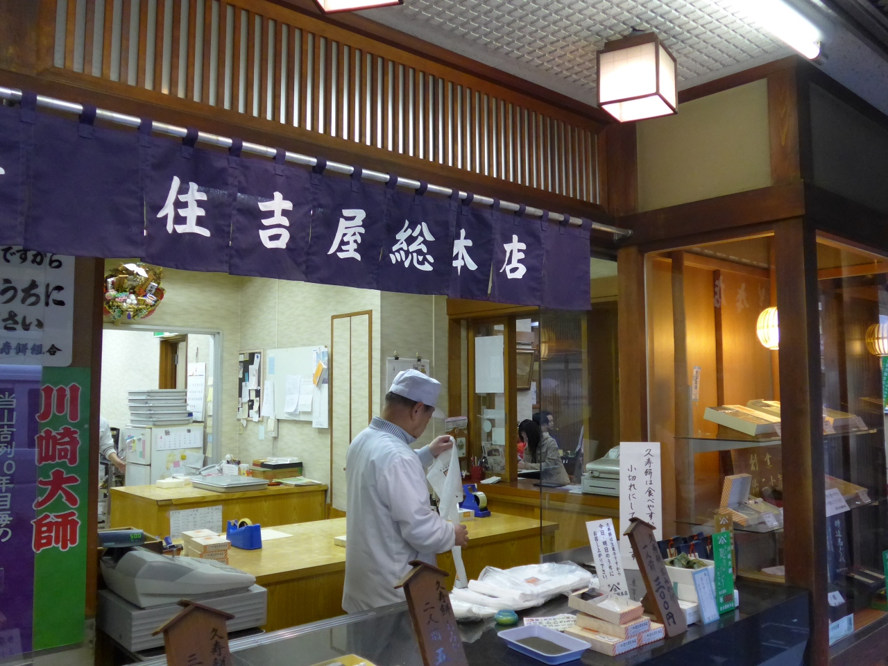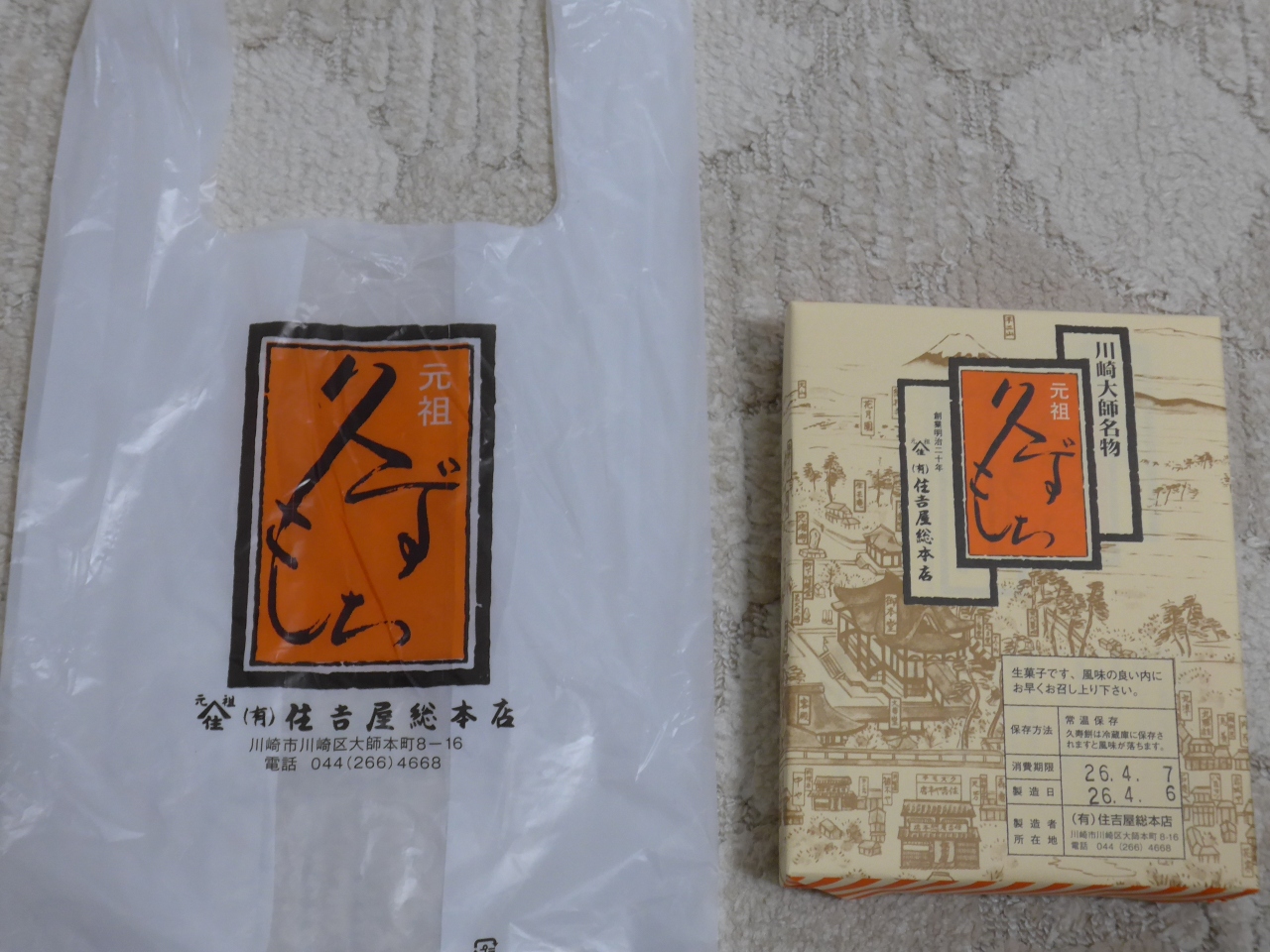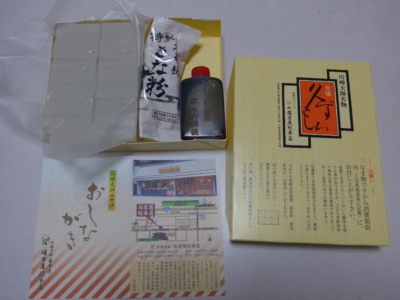 見て・食べて帰路で川崎大師名物の住吉屋総本店のくずもちを土産に購入しました。