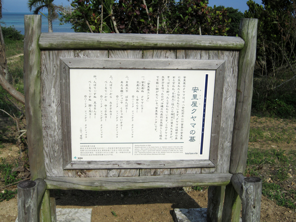 琉球民謡としてもよく知られている安里屋ユンタ。その舞台はこの竹富島で、安里屋クヤマの生き方が歌われた歌が安里屋ユンタとのこと。